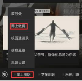 第二步:进入“川职动态”微信公众号,选择“掌上川职”--“网上缴费”